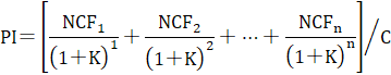 利润指数又称现值指数(用PI表示),是指投资项目未来报酬的总现值与初始投资额的现值之比。利润指数的计算公式为: